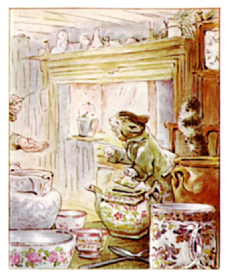 But Simpkin hid a little parcel privately in the tea-pot, and spit and growled at the tailor; and if Simpkin had been able to talk, he would have asked: "Where is my MOUSE?"
