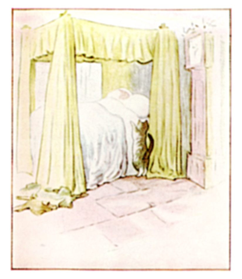 And still Simpkin wanted his mice, and he mewed as he stood beside the four-post bed.