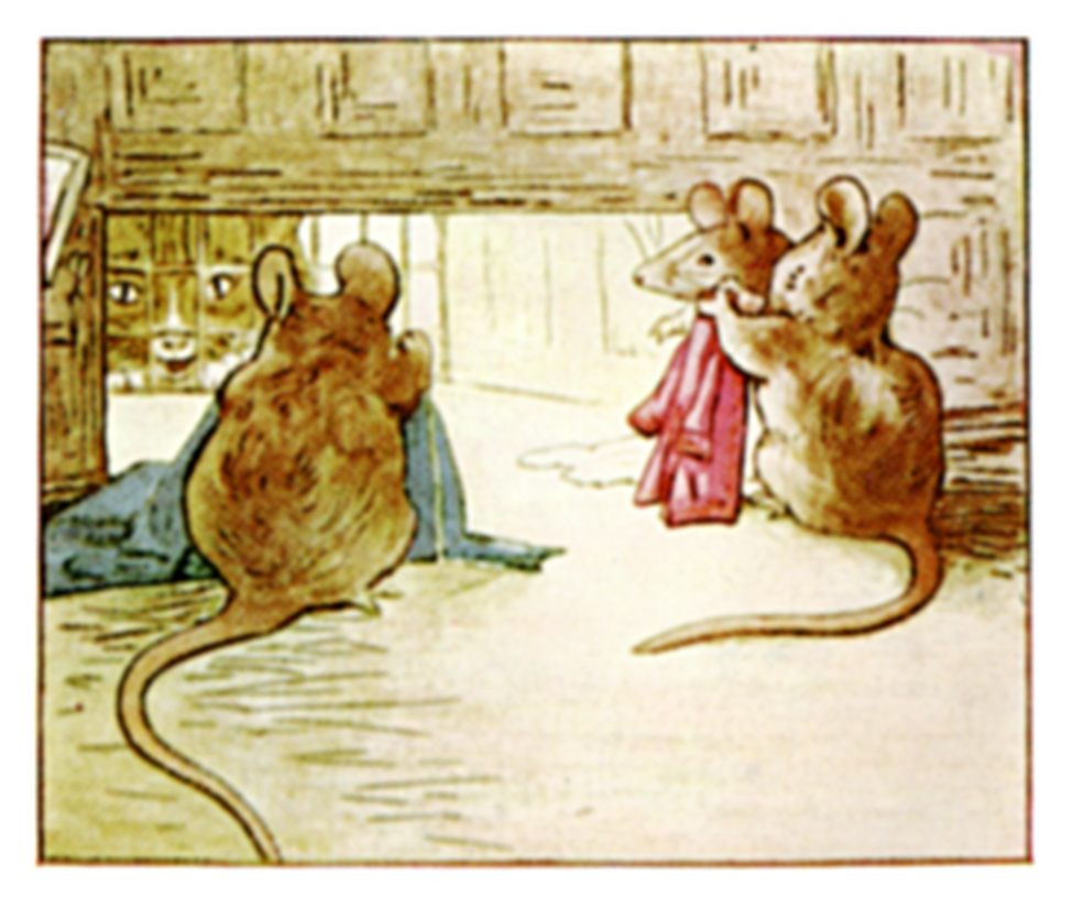 "No breadth at all, and cut on the cross; it is no breadth at all; tippets for mice and ribbons for mobs! for mice!" said the Tailor of Gloucester.
