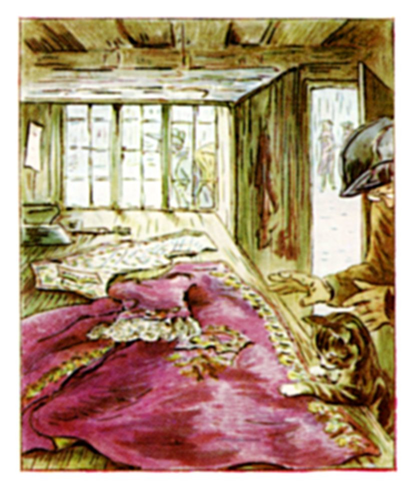 Now all day long while the tailor was out at work, Simpkin kept house by himself; and he also was fond of the mice, though he gave them no satin for coats!
